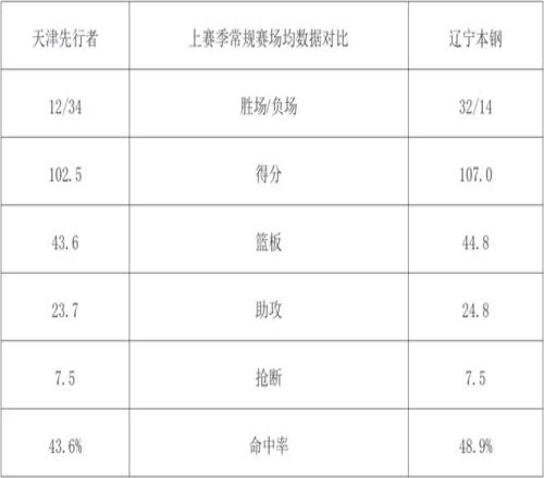 上赛季常规赛场均数据对比: