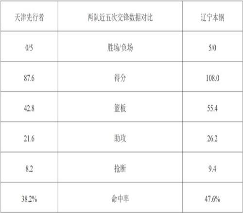 两队近五次交锋数据对比:
