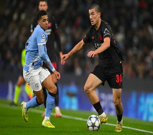 即便是瓜迪奥拉对首发阵容进行了大幅度的轮换,哈兰德、福登等都坐在场下,曼城依旧能占据场上的主动权,勒沃库森踢得相当被动。
